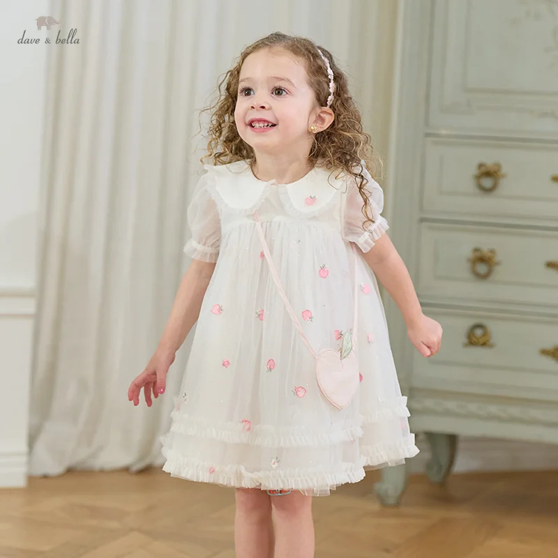 DB3253125 DAVE BELLA Children's Dress Autumn Fashion Charm Gentle Cute Sweet Girls' Pink Mesh Princess Dress Party Outdoor
