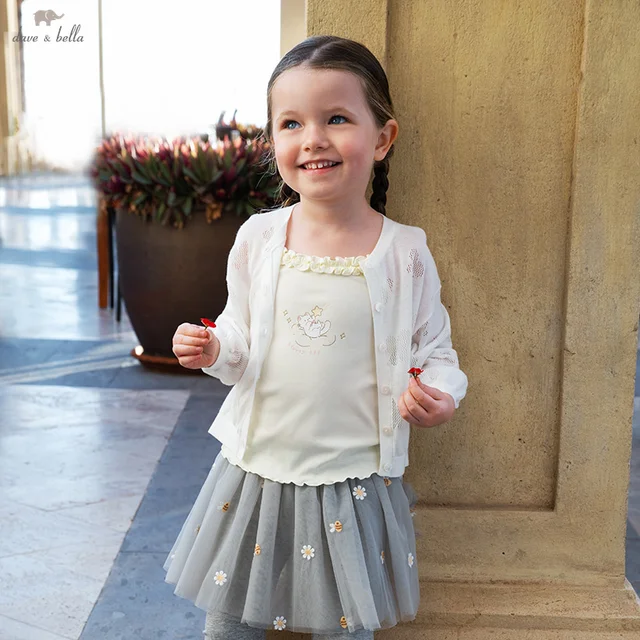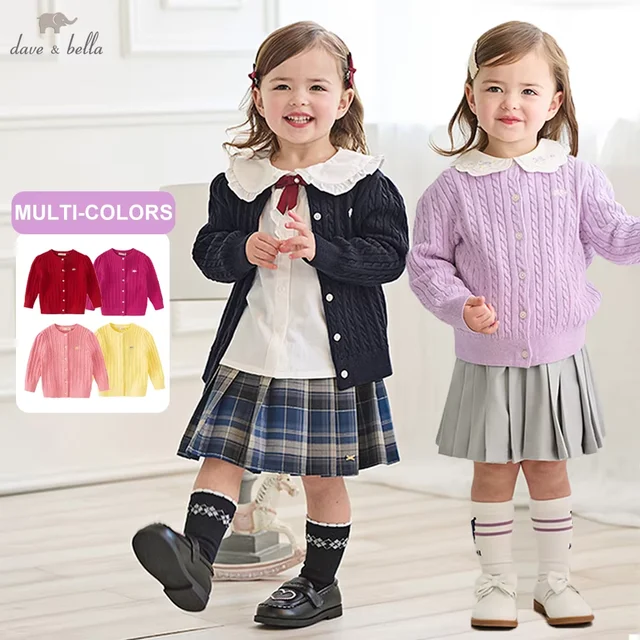 DB3253362 DAVE BELLA Girls' Cotton Sweater Cardigan Autumn Casual Sweet Cute Cartoon Baby Knitted Sweater Children's Coat Tops