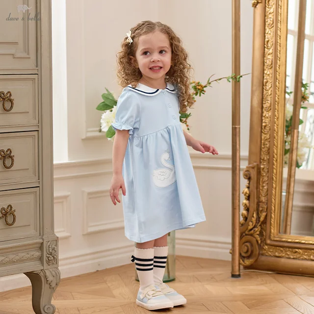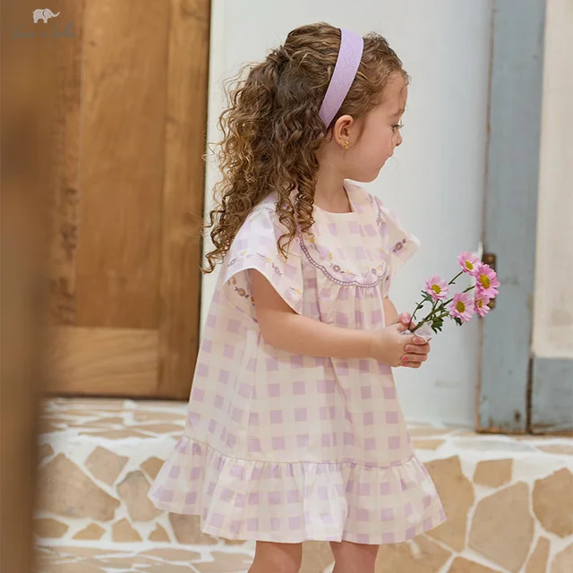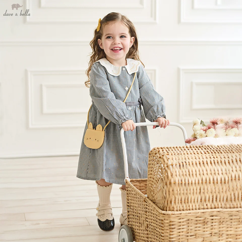 DB3254962 DAVE BELLA Girls Baby Polo Dress Autumn Apparel New Sweet Cute Kids Pink Pleated Skirt Pure Cotton Preppy Style Dress