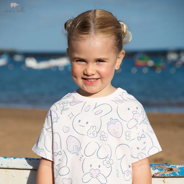 DK3252658 DAVE BELLA Children's Long Sleeved T-shirt Autumn Sweet Cute Cartoon Print Bottoming Shirt Casual Baby Cotton Top