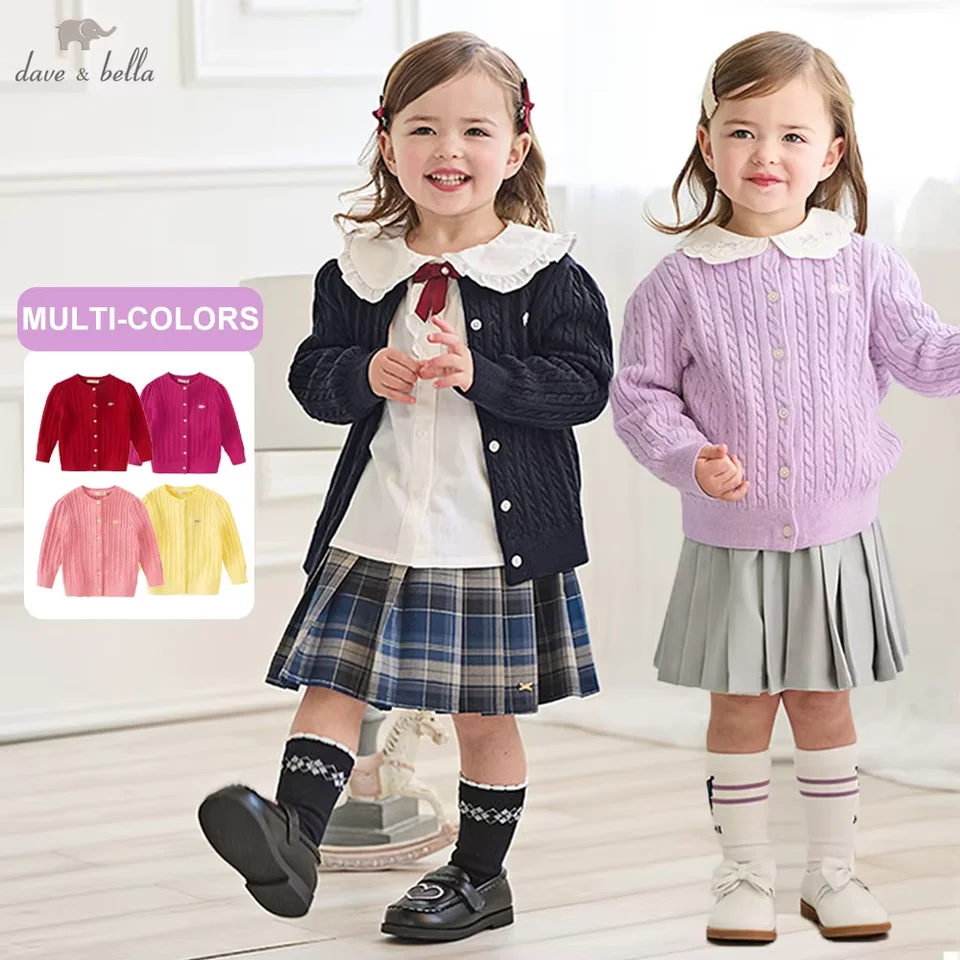 ملابس أطفال من 2-12 من ديف بيلا ، سترة محبوكة ، كارديجان خريفي ، معطف جميل بنمط أنيق للفتيات الصغيرات