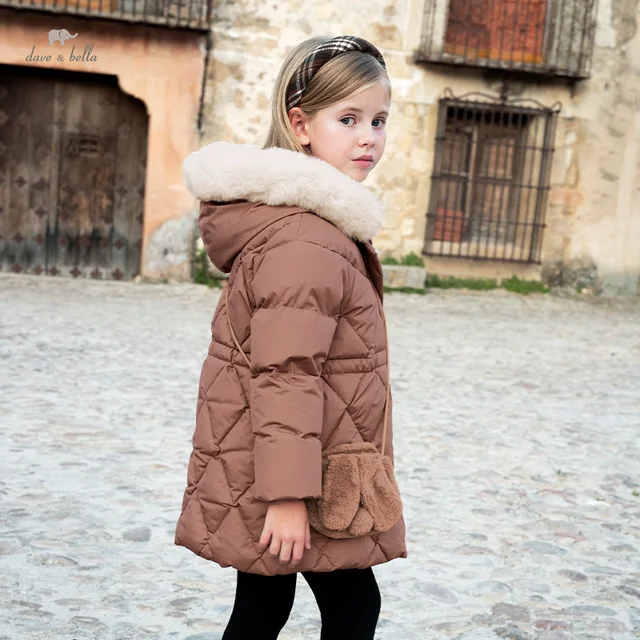 DB4247744 DAVE BELLA Children's Parka Autumn Winter New Style for Girls Baby Hooded Jacket Casual Coat Thick Lapel Outerwear