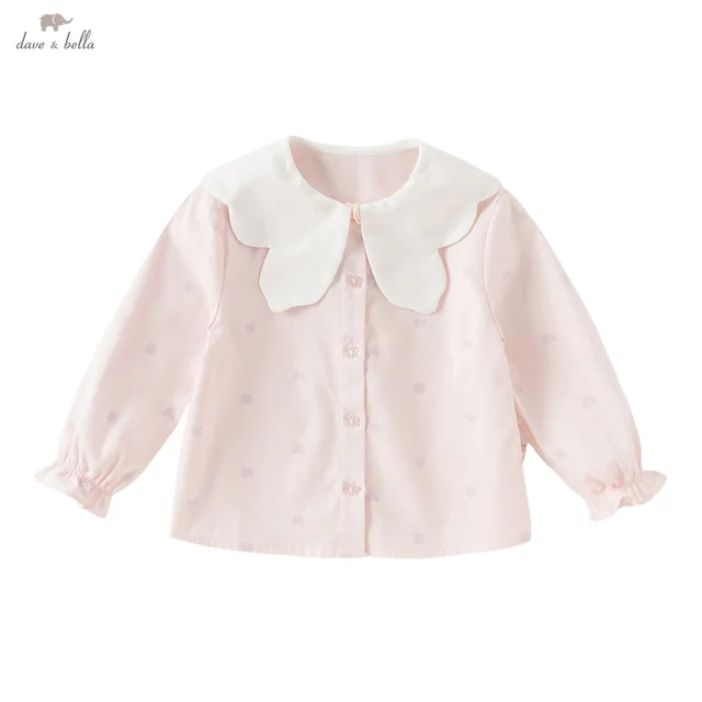 DB3252718 DAVE BELLA Children's Pink Shirt Sweet Gentle Cute Autumn Girl's Pure Cotton Sweet Long Sleeve Butterfly Print Blouse