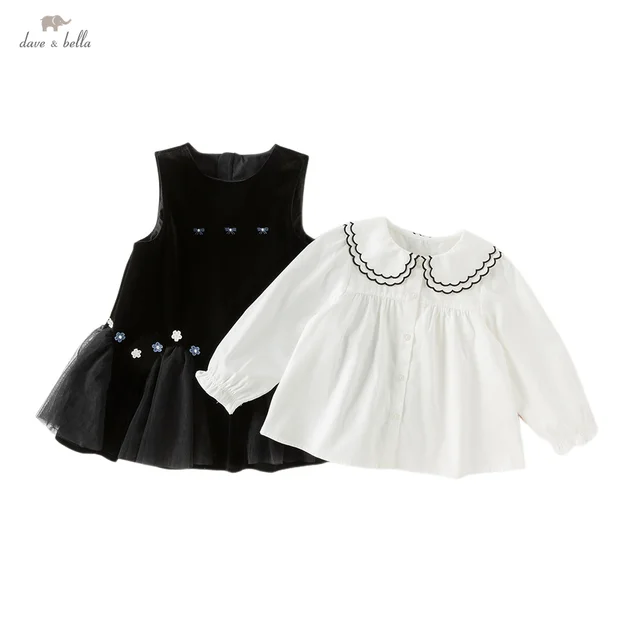 DB3253295 DAVE BELLA Children's Dress Autumn Outfit New Girls' Mesh Long Sleeved 2-piece Blouse Princess Dress Party Outdoor