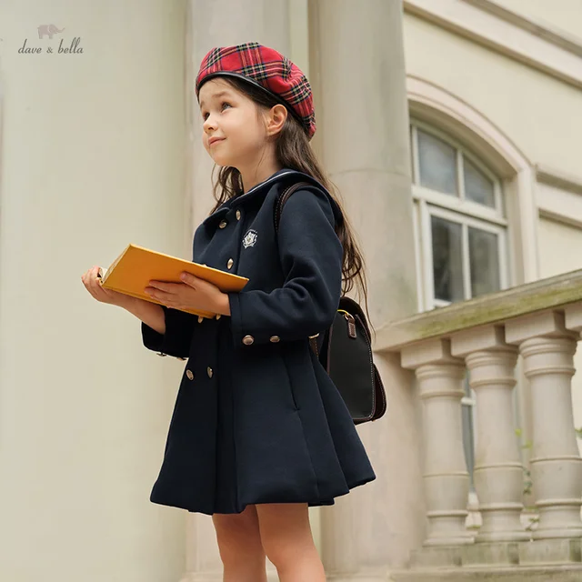 DK3241807 Dave Bella Girls' Outerwear Children's Preppy Style Top Children's Coat New Autumn Girls' Clothes Elite School
