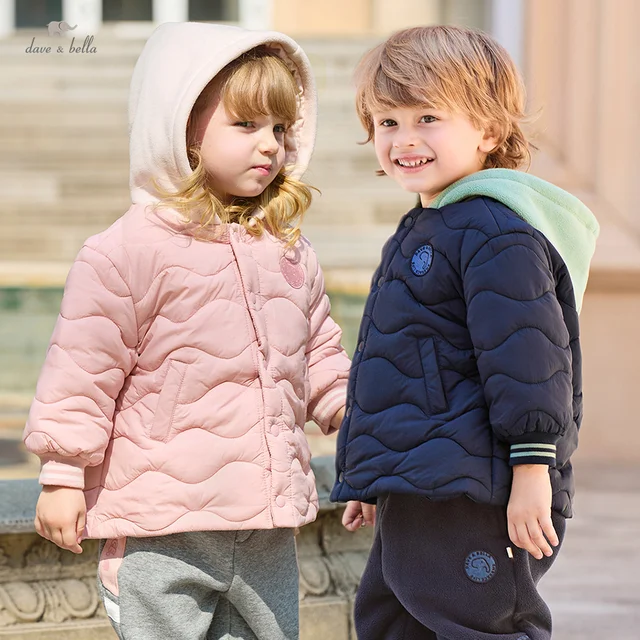 DB4242714 DAVE BELLA سترة أطفال للخريف والشتاء تصميم جديد للفتيات والفتيان سترة بغطاء رأس معطف غير رسمي ملابس خارجية وردية