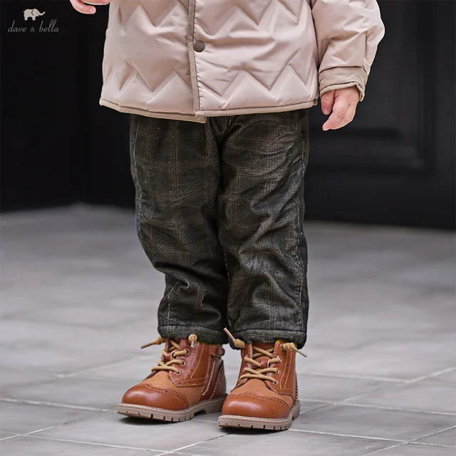 سراويل أطفال DB4254012 DAVE BELLA بنمط جديد للخريف والشتاء في الهواء الطلق بناطيل بيج دافئة ومريحة واسعة