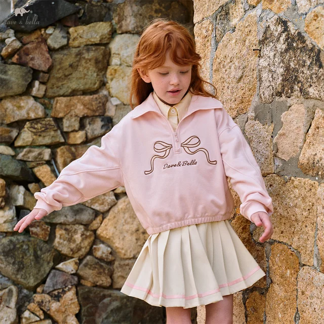 DB4254729 DAVE BELLA Children's Sweater Pullover Autumn Winter New Style for Girls Casual Long Sleeved Fashion Knitted Top