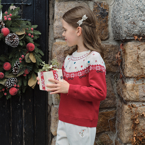 DK4254576 DAVE BELLA子供用レッドセータープルオーバー暖かい冬服女の子用新年クリスマスキッズトップニット
